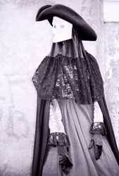 Als Napoleon 1797 Venedig eroberte, ging mit der Republik auch der Karneval unter. Er wurde 1980 von der Stadt Venedig wieder ins Leben gerufen, und die ganze Stadt wurde zur Bühne erklärt. Die Maske hat in Venedig eine lange Tradition: Schon in vergangener Zeit stand es jedermann frei, in den Tagen des Karnevals eine beliebige Rolle anzunehmen - ob Bürger oder Edelmann, ob Kurtisane oder Dame des Adels. Damit wurden für einige Tage die gesellschaftlichen Hierarchien außer Kraft gesetzt, und ein jeder konnte sich der Illusion einer anderen Identität hingeben. Die Maske symbolisiert auch die Doppelgesichtigkeit venezianischen Lebens: Man verbirgt sich und stellt sich doch gleichzeitig zur Schau. Auf vielen kleinen Bühnen der Stadt finden in der Tradition der Commedia dell'Arte Aufführungen statt. Carlo Goldini, der venezianische Komödienschreiber,