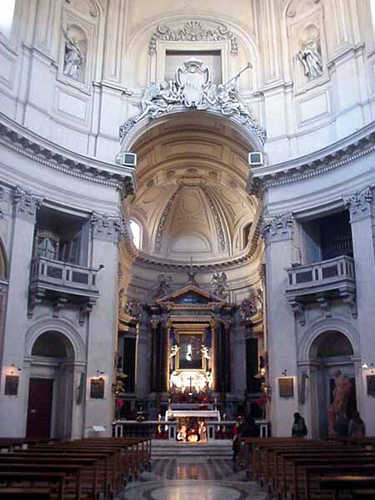 Diese klassisch proportionierte Kirche ist vollständig mit farbigem Marmor verkleidet, und in Marmor ist auch die üppige Innenausstattung gearbeitet.