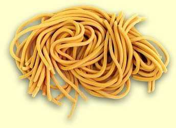 Weitläufig von der Polenta überholt haben die Nudeln im Veneto nur eine typische lokale Sorte entwickelt und zwar die bigoli, die ein rustikales und rauhes Exemplar großer Spaghetti darstellen und mit großer Mühe mit einer von Hand gedrehten Presse hergestellt werden. Noch heute werden sie in einigen Familien auf dem Land so gemacht, wobei die Aufgabe den Männern zufällt, da man dazu große Kraft benötigt. Heute stellen viele handwerkliche Werkstätten die bigoli täglich maschinell her. Man findet sie auch trocken, in industriell angefertigten Päckchen, doch die Tradition verlangt sie frisch, gerade aus der Bronzematrize der Presse gekommen. Die weltberühmten Spaghetti haben ihren Ursprung übrigens in China. Sie wurden den Europäern über Marco Polo bekannt gemacht. |