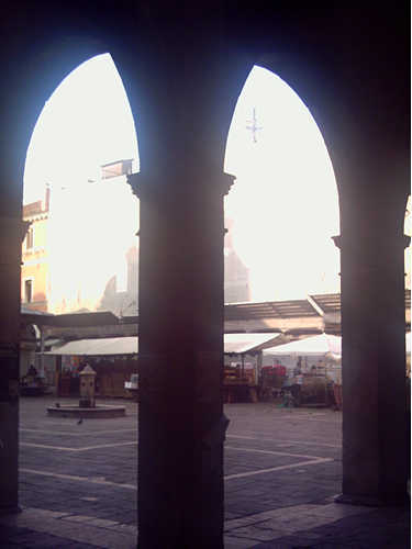 Hier befinden wir uns am entgegengesetzten Eingang zum Fischmarkt, von der Rialtobrücke aus gesehen. |