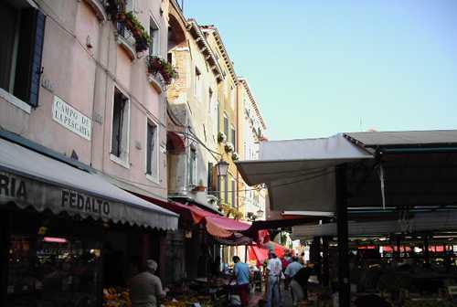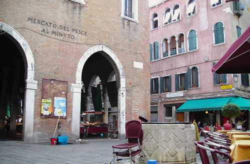findet man den Markt, an dem die Venezianer schon seit über 1.000 Jahren ihre Lebensmittel einkaufen. Von 8.00 Uhr bis 13.00 Uhr täglich ausser sonntags ist der Markt geöffnet. Das Obst und Gemüse stammt zum größten Teil aus Italien, sogar aus der direkten Umgebung Venedigs, von der Insel San Erasmo, der sog. Gemüseinsel Venedigs.