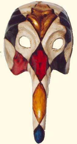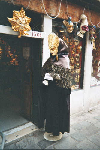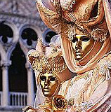 Als Napoleon 1797 Venedig eroberte, ging mit der Republik auch der Karneval unter. Er wurde 1980 von der Stadt Venedig wieder ins Leben gerufen, und die ganze Stadt wurde zur Bühne erklärt. Die Maske hat in Venedig eine lange Tradition: Schon in vergangener Zeit stand es jedermann frei, in den Tagen des Karnevals eine beliebige Rolle anzunehmen - ob Bürger oder Edelmann, ob Kurtisane oder Dame des Adels. Damit wurden für einige Tage die gesellschaftlichen Hierarchien außer Kraft gesetzt, und ein jeder konnte sich der Illusion einer anderen Identität hingeben. Die Maske symbolisiert auch die Doppelgesichtigkeit venezianischen Lebens: Man verbirgt sich und stellt sich doch gleichzeitig zur Schau. Auf vielen kleinen Bühnen der Stadt finden in der Tradition der Commedia dell'Arte Aufführungen statt. Carlo Goldini, der venezianische Komödienschreiber,