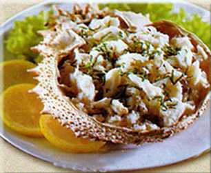 Zutaten für 4 Personen: Salz, 1 Bund Petersilie, Olivenöl, Pfeffer, Zitronensaft, 4 Granseole (große Krabben aus Venedig) Zubereitung: Krabben gut waschen und in kochendem gesalzenem Wasser kochen. Sobald sie gar sind, abgießen und abkühlen lassen. Die Krabben im unteren Teil der Schale (carapace) öffnen, das Fleisch und das corallo (korallenrote Innereien) herausnehmen. Das Fleisch in Stückchen schneiden, in eine Schüssel geben und das corallo, das Fleisch der Scheren und der Füße (man kann für das Herausnehmen des Fleisches der Scheren und der Füße einen Nussknacker verwenden) dazugeben. Gut umrühren. In einer Tasse das Öl, die Zitrone und ein wenig Pfeffer mit einer Gabel gut emulgieren lassen und danach die gehackte Petersilie dazugeben. Das Fruchtfleisch in die umgedrehten und gewaschenen Schalen geben und mit der vorbereiteten Sauce anmachen. |