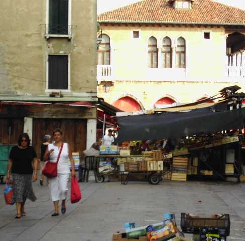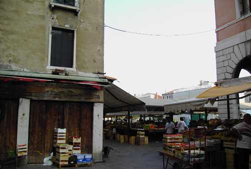 findet man den Markt, an dem die Venezianer schon seit über 1.000 Jahren ihre Lebensmittel einkaufen. Von 8.00 Uhr bis 13.00 Uhr täglich ausser sonntags ist der Markt geöffnet. Das Obst und Gemüse stammt zum größten Teil aus Italien, sogar aus der direkten Umgebung Venedigs, von der Insel San Erasmo, der sog. Gemüseinsel Venedigs.